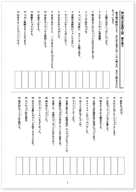 岡山県公立高校入試の過去問28年分の漢字の「書き取り」と「読み」の問題演習ができます。
