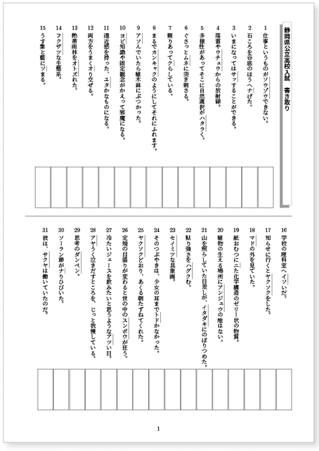 静岡県公立高校入試の過去問28年分の漢字の「書き取り」と「読み」の問題演習ができます。